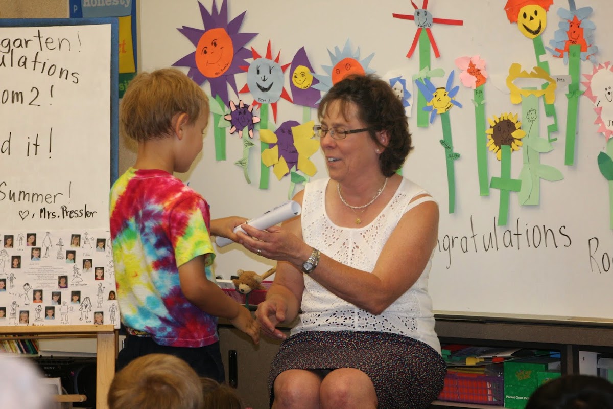 I finished kindergarten and my teacher, Mrs. Pressler, gave me a nice certificate.